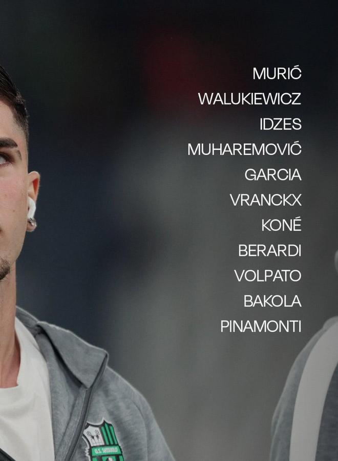 萨索洛首发:49-穆里奇、80-穆哈雷莫维奇、21-伊泽斯、6-瓦卢凯维奇、23-乌利塞斯-加西亚、50-巴科拉、90-科内、7-沃尔帕托、40-弗兰克斯、99-皮纳蒙蒂、10-贝拉尔迪
